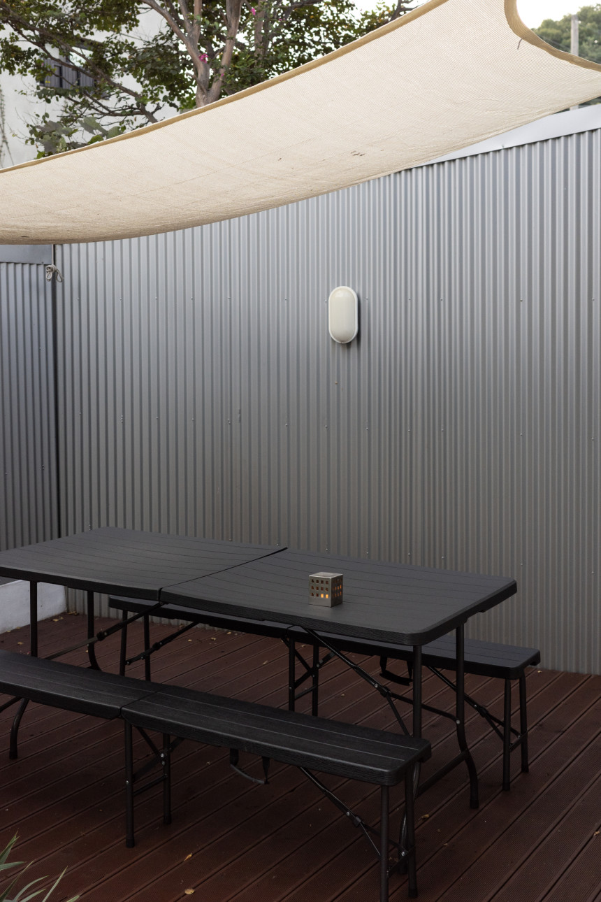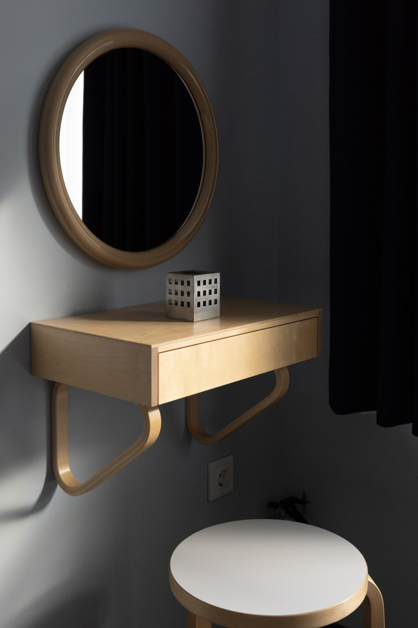 오래된 아파트와 구축 건물에서 영감을 받아 만들어졌으며, 스테인리스 스틸 소재를 사용하여