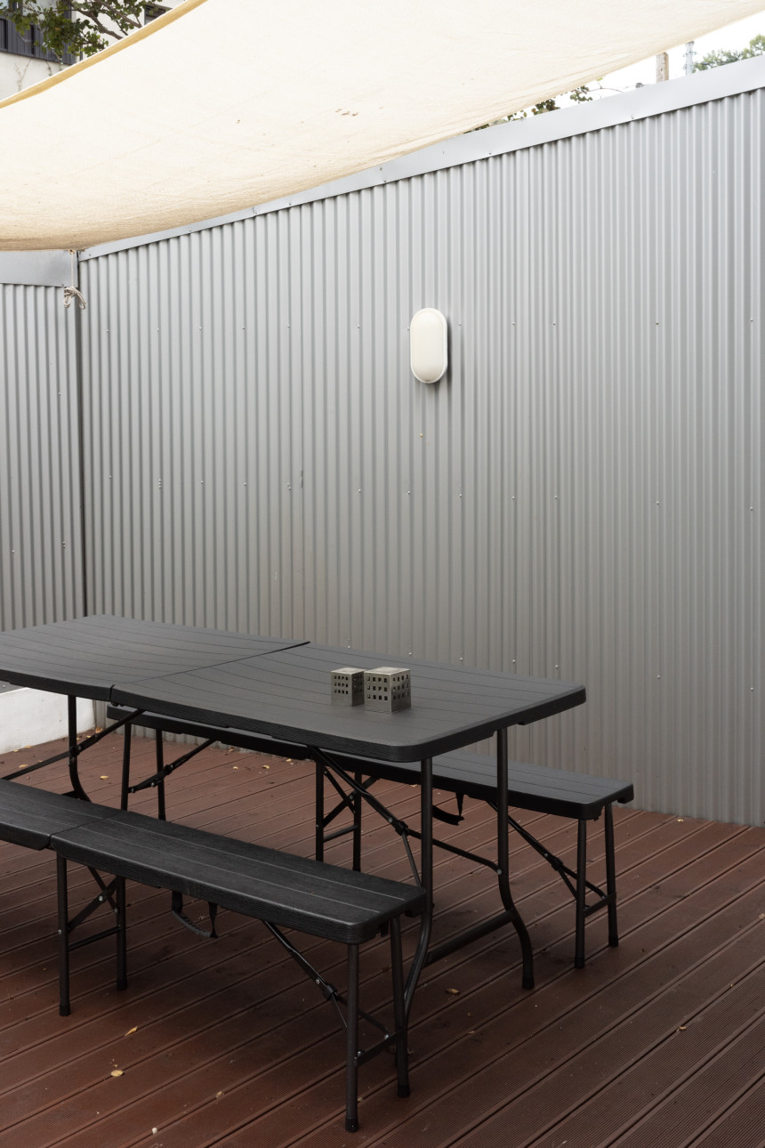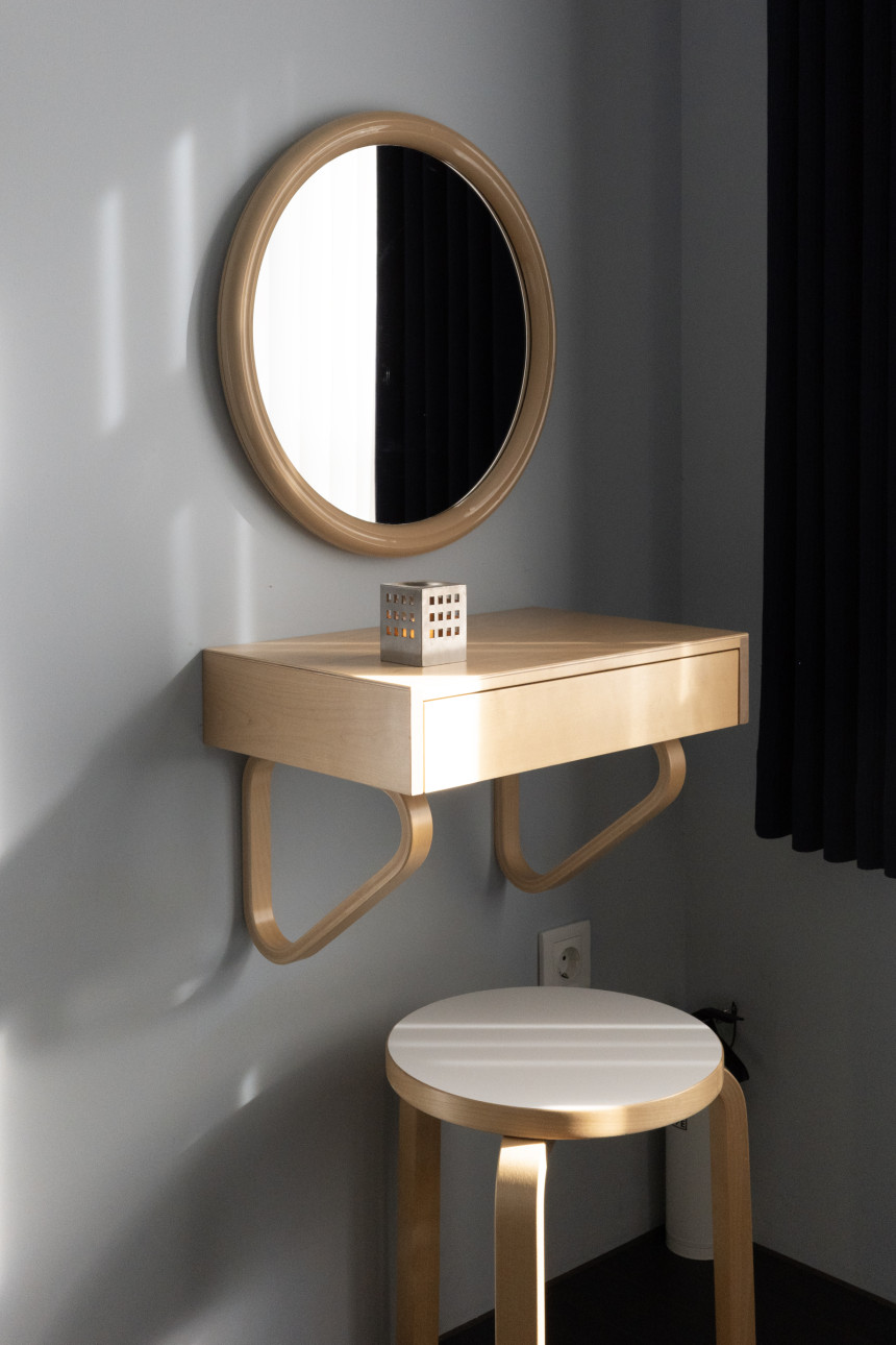 오래된 아파트와 구축 건물에서 영감을 받아 만들어졌으며, 스테인리스 스틸 소재를 사용하여