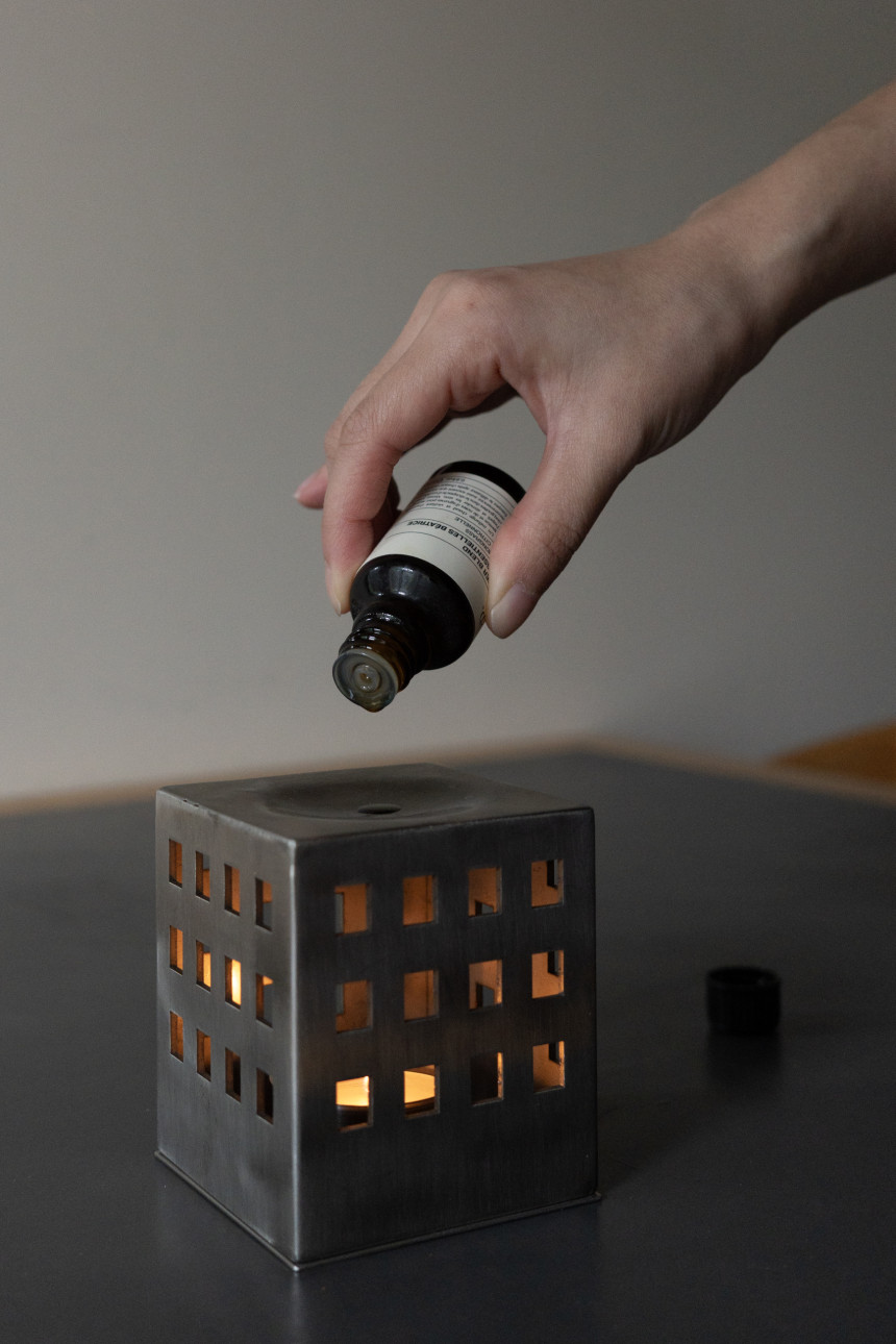 1. 아파트먼트의 덮개를 제거한 후 티라이트 캔들을 받침에다 놓고 불을 붙여주세요.
